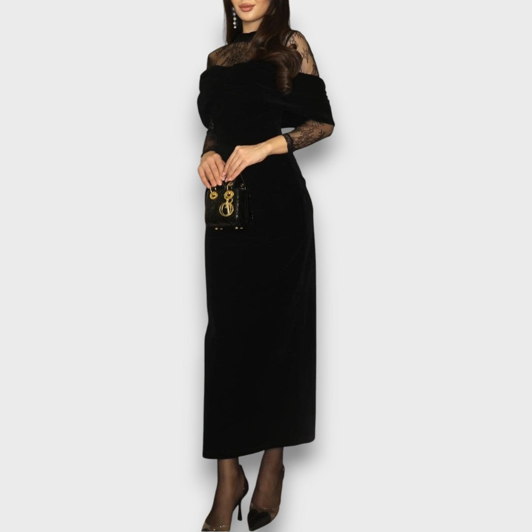 Selara – Velvet Lace Off-Shoulder Evening Dress