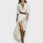 Selvya – Maxi Pleated Dress with Waist Belt